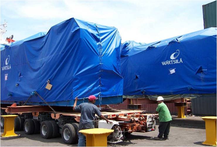 SUPPLIER: Wartsila Finland GOODS: 4 Diesel Engines DIMENSION: 11.74 x 3.70 x 4.49m WEIGHT: 127 Tons each SCHEDULE: May 2006